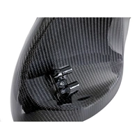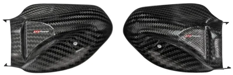 Dynamic Air Scoops lower air intake temperatures byforcing more cool air from the front grilles into the factory intake tract. These scoops are constructed from 100% twill weave carbon fiber (no fiberglass) for lightweight, heat protection, and good looks. They feature a gloss finish on the exterior and a matte finish inside. They are precisely designed and manufactured to snap directly into the factory inlet ducts and mount onto the vehicle's V-support brace. No additional hardware is required for a hassle-free installation.