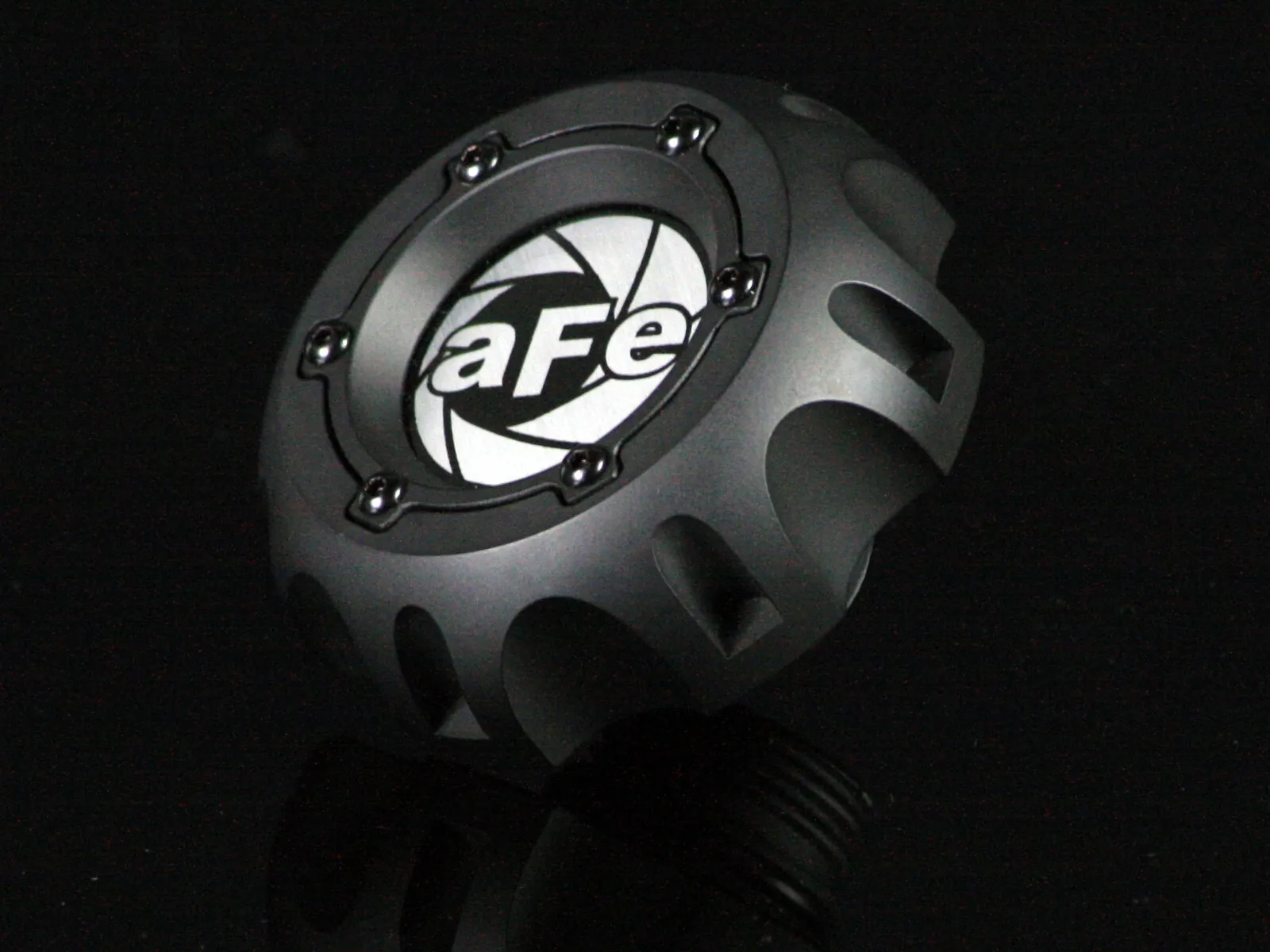 This all "NEW" aFe oil cap gives styling a whole new aspect. Machined from durable CNC 6061-T6 billet aluminum for maximum strength and durability. This oil cap features eye-catching black chrome screws and a flawless matte black finish. Equipped with a new o-ring style gasket this cap ensures a leak free seal while enhancing the look of your engine compartment. This billet aluminum oil cap is truly a quality addition to any engine.