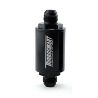 Turbosmart Billet Inline Fuel Filter 1.75" OD (45mm) and 3.825" (97mm) Long with -10AN male inlet and outlet fittings. Comes with 10 micron washable stainless steel mesh cartridge filter. Anodized black.