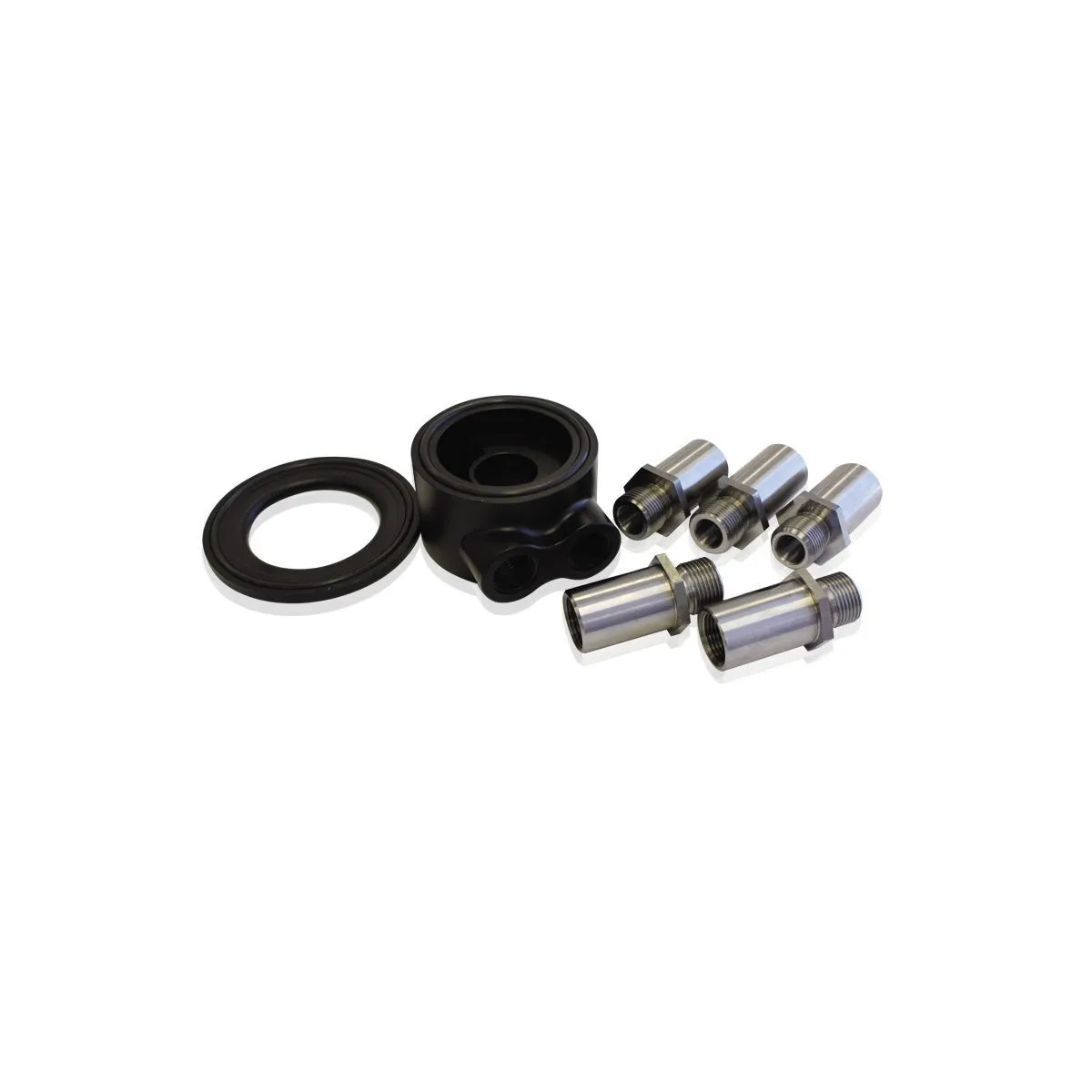 The Aeroflow Performance universal billet sandwich adapter is designed to sit in-between the standard oil filter and the vehicle engine block. It is required for most engine oil cooler installations to provide oil flow to the external oil cooler. In most cases the factory OE oil filter will work with this sandwich adaptor. It is designed as a universal fitment item and may or may not fit your application.