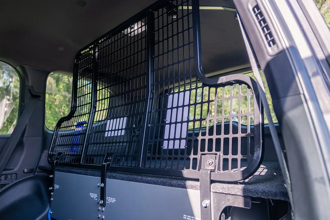 The MSA 4X4 Cargo Barriers have undergone extensive testing and have complied with the ADR Crash Test Standard: AS/NZS 4034.2:2008 and include an Emergency Escape Hammer. Designed to safely attach to the rear of an MSA 4X4 Storage Drawer System, utilising the Cargo Barrier mounting points incorporated into the drawer frame. Child seat restraint points, remain accessible and are not compromised. Creating a safety net to help prevent gear from flying around, potentially injuring passengers in the back seat. Its gloss black powder-coated steel frame provides safety, strength and durability.