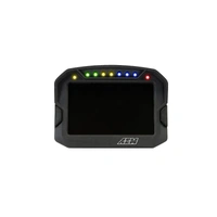 CD-5 Carbon Digital Dash Displays feature a full-color, daylight readable screen surrounded by a tough, lightweight flow-molded carbon fiber composite housing. Seven ultra-bright LEDs span the top of the display housing for RPM and shift light indication. Users can program them to ascend in specific increments based on RPM range and flash when it is time to shift. Brightness is user programmable on the fixed color LEDs. Two large buttons are included on the face of the display, allowing easy page changing and memory resetting even with driving gloves on. These button functions are included in the supplied rear connector, allowing the user to mount remote buttons. Two additional programmable LEDs are located above the toggle buttons on the top of the housing on either side of the integrated LED shift lights.