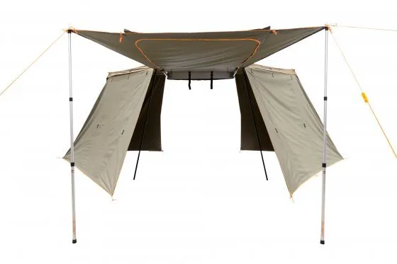 • The optional wall kit can be set up as a wind and weather break, or as an awning extension.