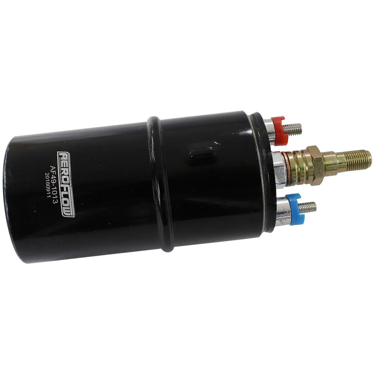 This Aeroflow Performance fuel pump delivers outstanding performance and duraility and is one of the most popular pumps on the market for performance and racing applications. This fuel pump is almost identical to the AF49-1014 but is only suitable for In-Tank applications. It features a screen on the bottom of the fuel pump which acts as a filter to keep any unwanted debris from entering the pump. While producing 300lph (79GPH) of fuel low and operating at 72.5psi, you will be able to support 675 horsepower. It features a check valve already installed into the outlet, if you leave it in you will need to run a banjo fitting off it as it has a tapered thread. It is quite common for people to remove the check valve and screw and adapter straight in to the outlet. If you do this you will need to put an aftermarket check valve in-line to keep fuel pressure in your lines.