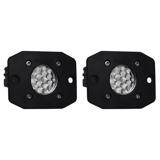 Most vehicles have very inadequate backup lighting, which can be a major safety problem. Rigid makes it easy to add compact and powerful backup lighting to any vehicle with the Rigid Ignite™ Backup Kit. The Ignite Series Accessory Lights are small but pack a lot of power with 1000 raw lumens in a light that measures just 1.4” x 1.4” x 2”. The Backup Light Kits are available with a pair of either flush mount or Surface Mount Ignite lights along with mounting brackets and related hardware. The powerful LEDs in each light consume less than one amp each, so powering them is often as easy as tapping into the vehicle’s existing backup lighting circuit.