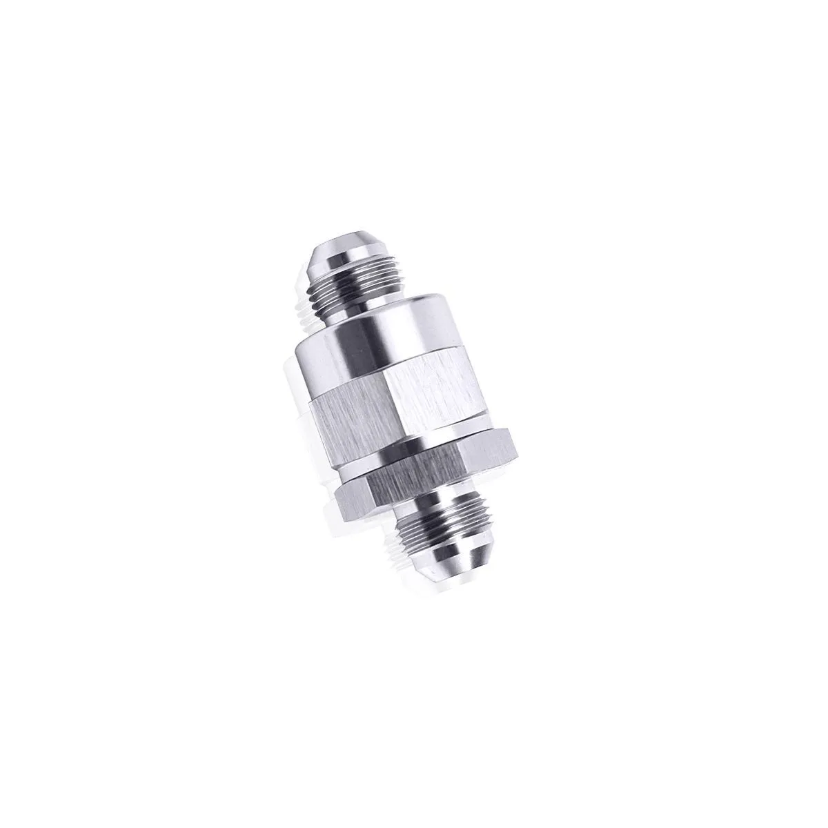 This one way check valve features a Male AN fittings on either end in sizes ranging from -6 through to -16. The valve comes with a 1.5psi spring installed and there is an optional 5psi spring where required. The length of the valve body is 29mm for the -6 and -8 or 35mm for the -10, 12 and -16 unit.