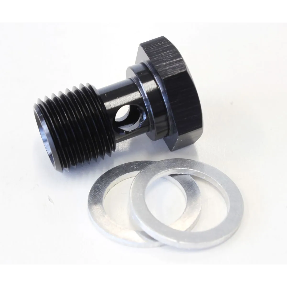 Aeroflow Performance 6061 T6 aluminium banjo body and banjo bolt fittings are ideal when wanting to convert fuel or oil lines to an AN male flare fitting. Banjo fittings provide flawless thread engagement and a positive seal at maximum operating pressures.