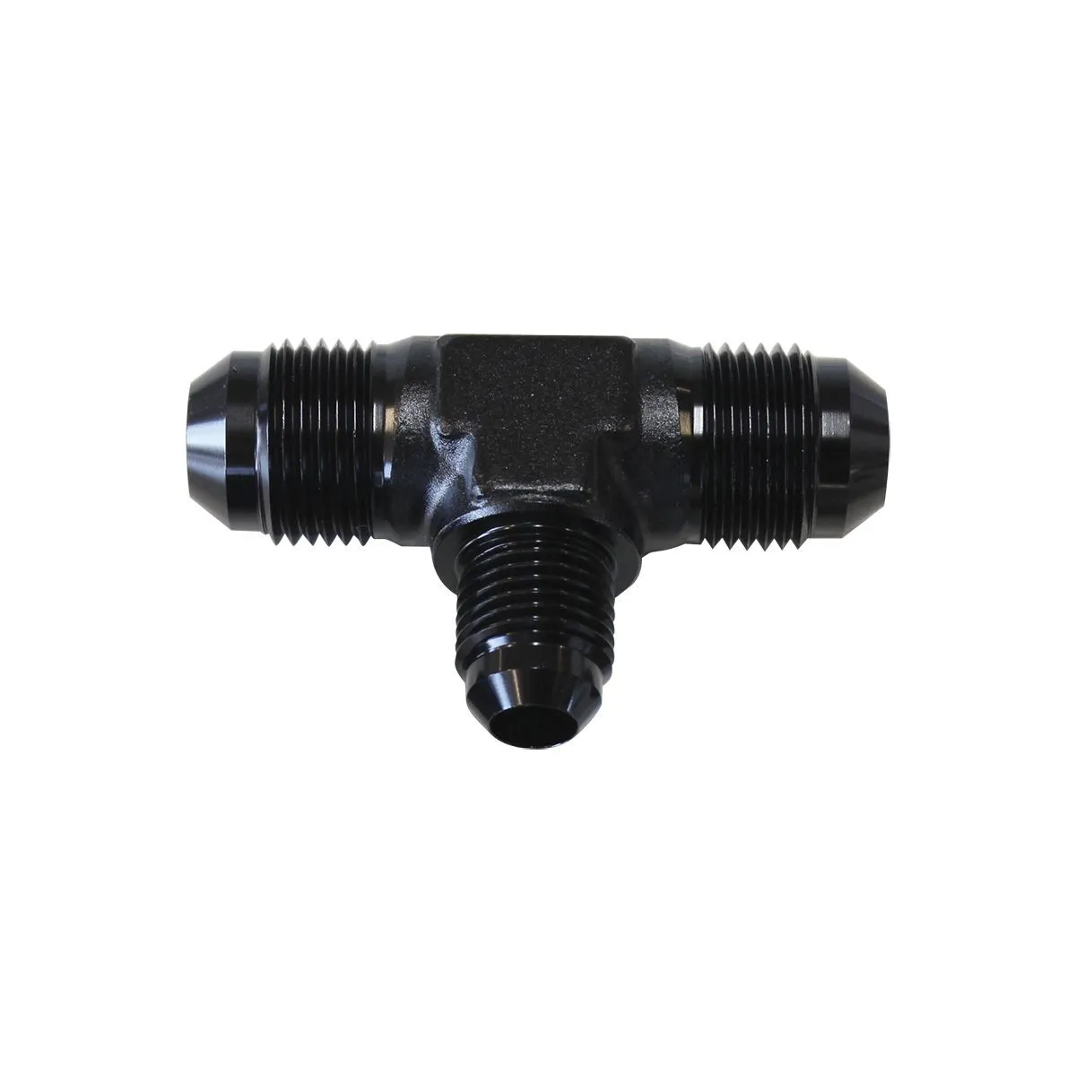 These AN male Tee pieces feature a stepped side fittings that is one AN size smaller than the fittings on the run. -6, -8 and -10 AN male flare sizes available.