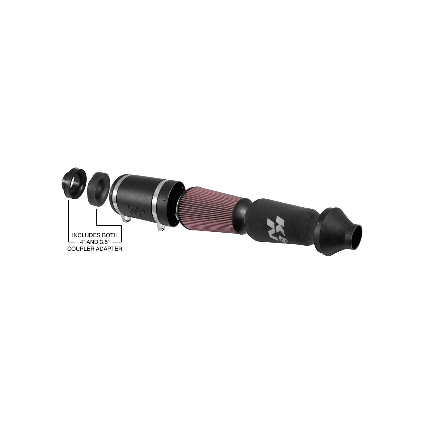 K&N’s Universal Off-road In-line Air Intake System, part 54-6853, was designed for extreme off-road racing. From side-by-sides to full race trucks, this kit can be used on a variety of off-road applications. The washable conical K&N air filter has six layers of cotton gauze for outstanding protection in off-road conditions. In addition, a foam wrap pre-filter is included to further extend the service life of the K&N air filter. The air intake housing is a cylindrical canister for rugged protection which allows excellent airflow in harsh off-roading environments. It can be mounted using the included hardware for a complete install. We also include two velocity stacks, a 3.5 inch and 4 inch adaptor, to make fitment on your application easy.