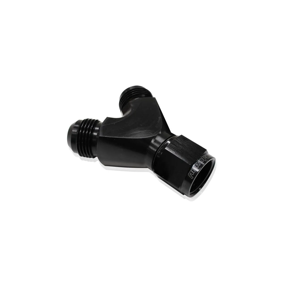 Aeroflow Performance Y block fittings are a good looking and effective way of splitting one line into two. These one-piece design blocks machined from 6061-T6 billet aluminium provide a smooth flow path for all types of fluids. The Y-fittings are available in different AN sizes in both male and female fittings to suit your applications. Anodized in either blue, black or silver finishes.